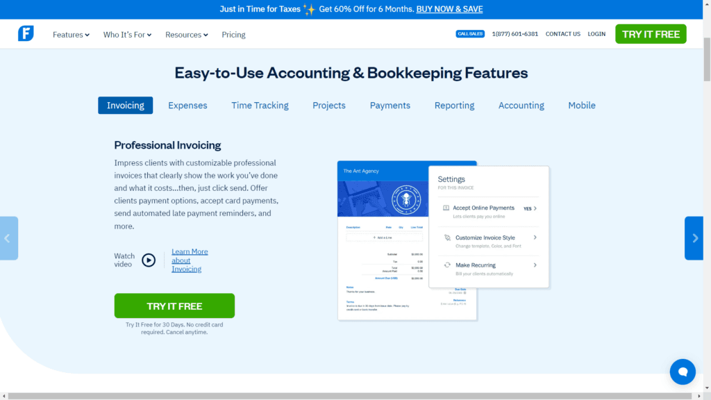 FreshBooks is one of the best invoicing software solutions on the market. It makes invoicing fast and simple with an intuitive user interface, comprehensive billing features, and easy-to-use expense tracking tools. Designed for efficiency, the software allows business owners to quickly create invoices, manage payments, set late payment reminders, and view real-time reports on invoice trends.