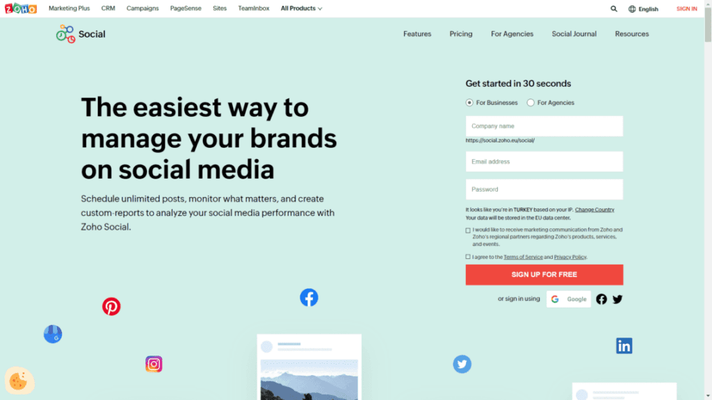 Zoho is a platform where businesses can manage their email, accounting, and websites. It also has a social media tool where they can manage their social media channels from a single place. ‘Zoho Social‘