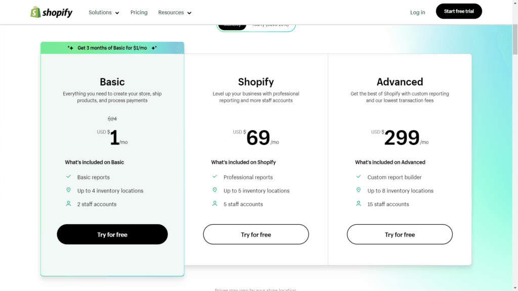 Shopify's basic plan starts at $29 per month. This plan also includes a domain name, hosting SSL certificate, and the option to use a subdomain. The "advanced" package with extensive features is bill $299 per month. For the Shopify Plus package with much broader features, need to speak to a Shopify representative.