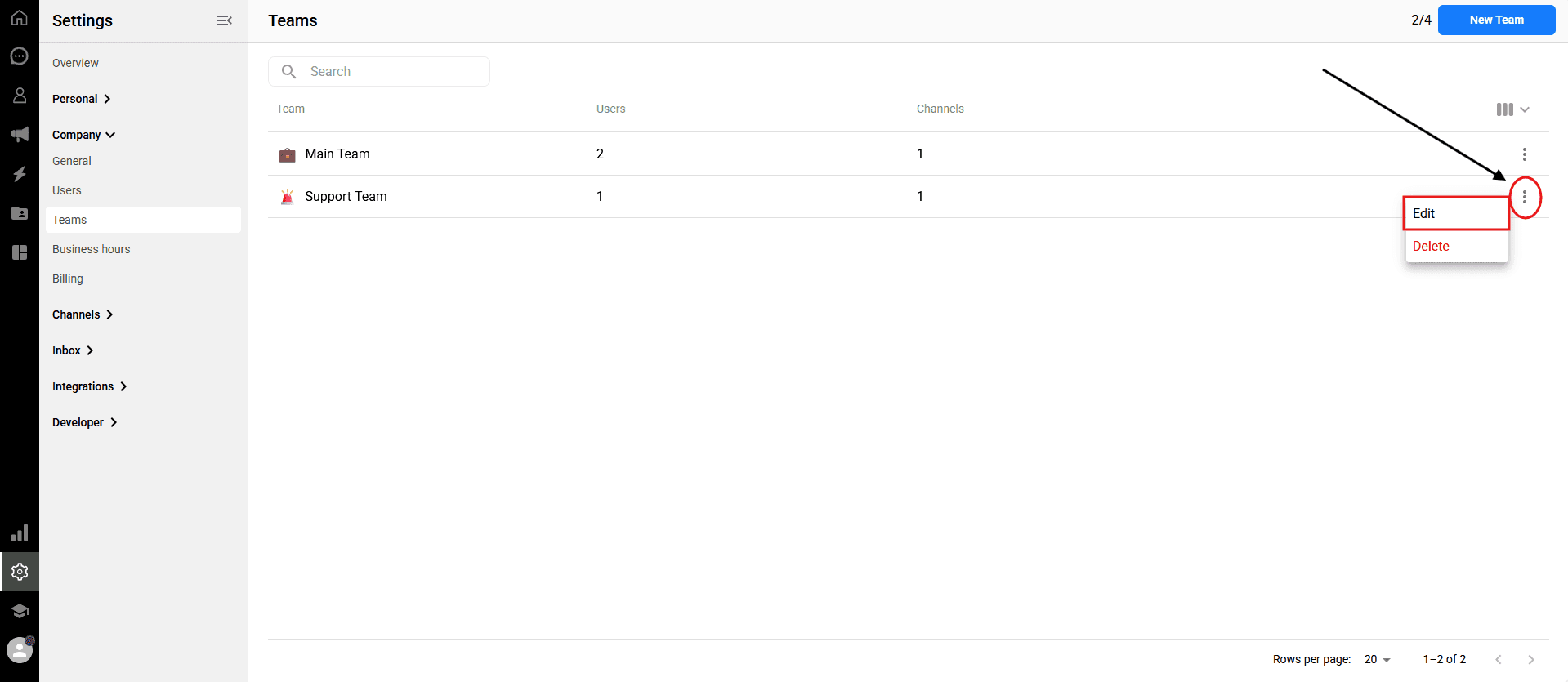 You can update your team's name, assigned members, or connected channels at any time to adapt to your changing workflow.