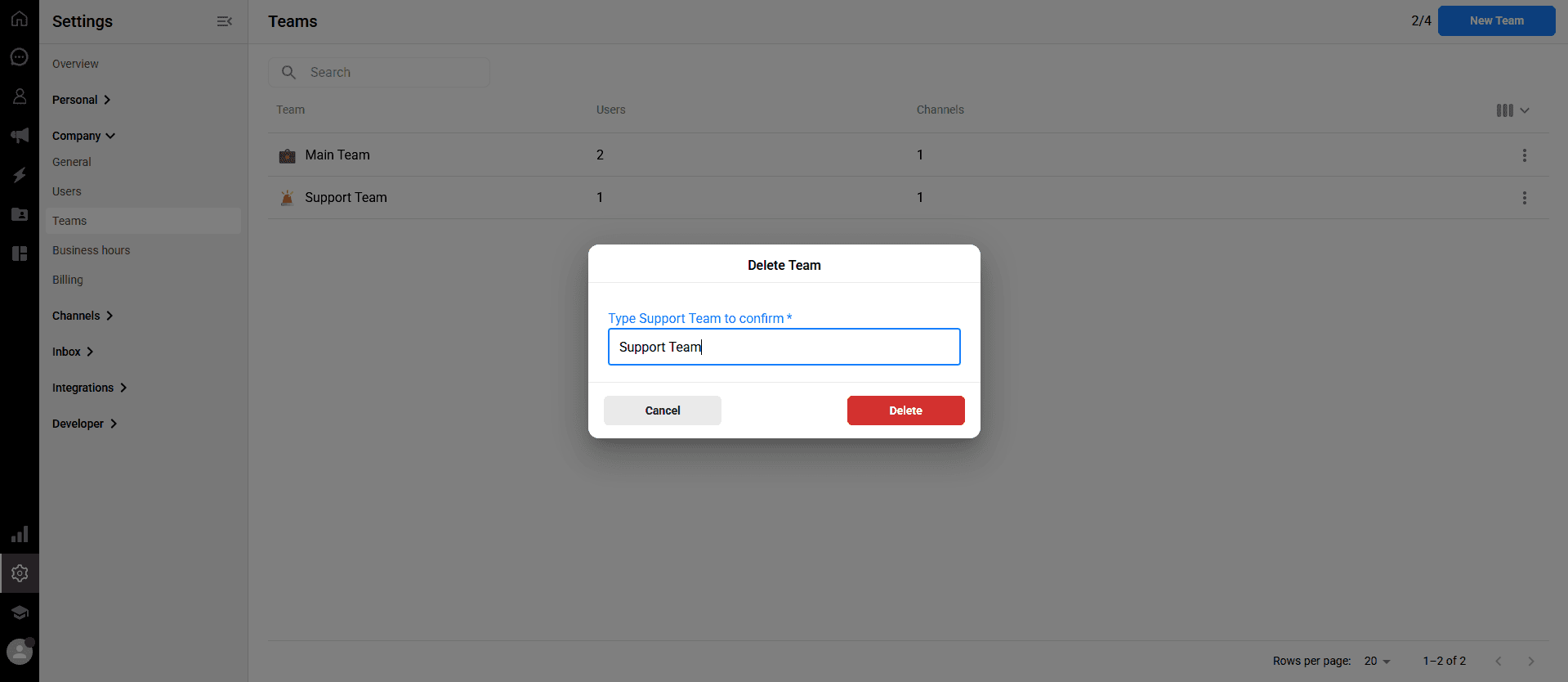 You can create multiple teams to handle different aspects of your customer support or sales processes.