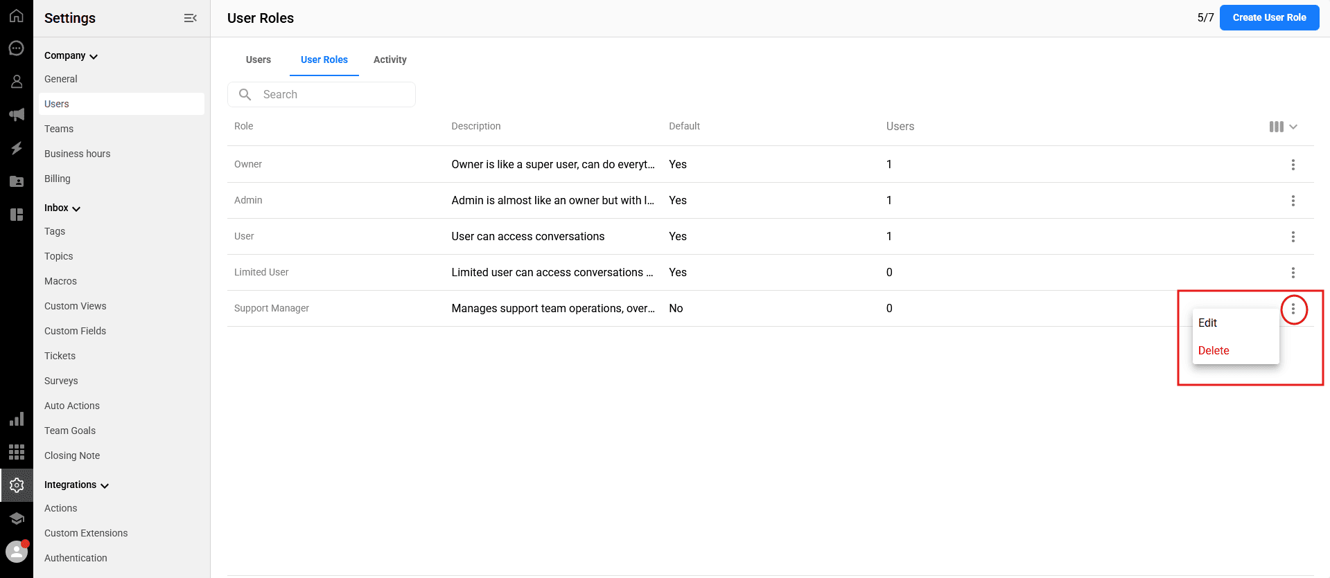 Editing or deleting custom roles