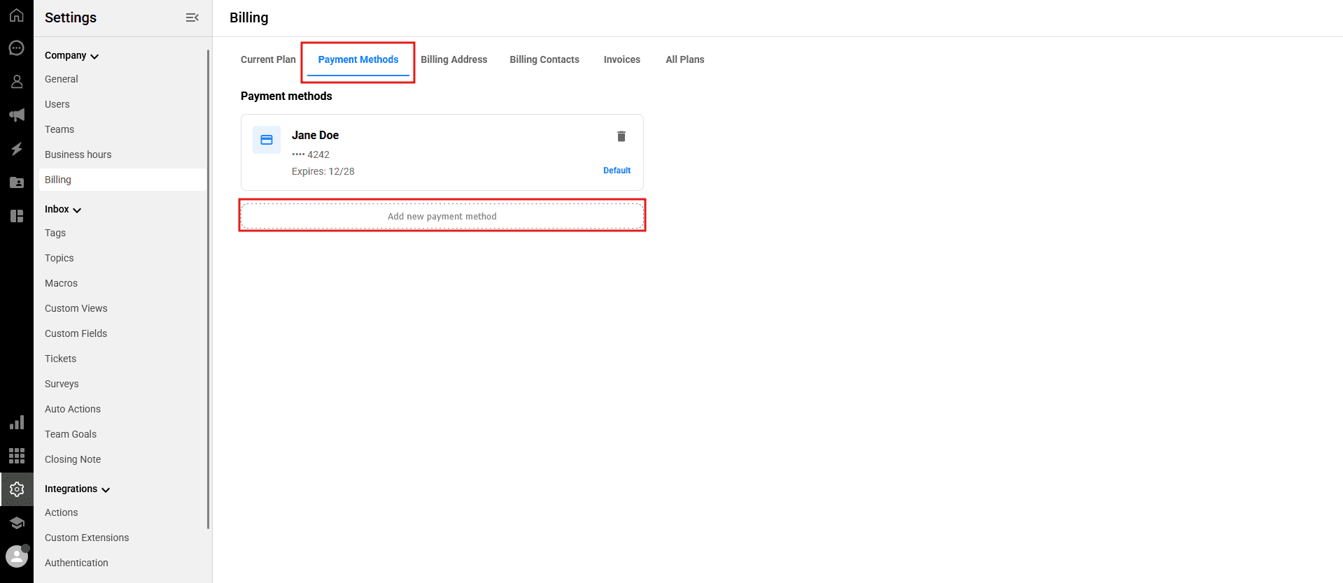 Here, you can add a new payment method, update an existing card, or change your preferred payment type.