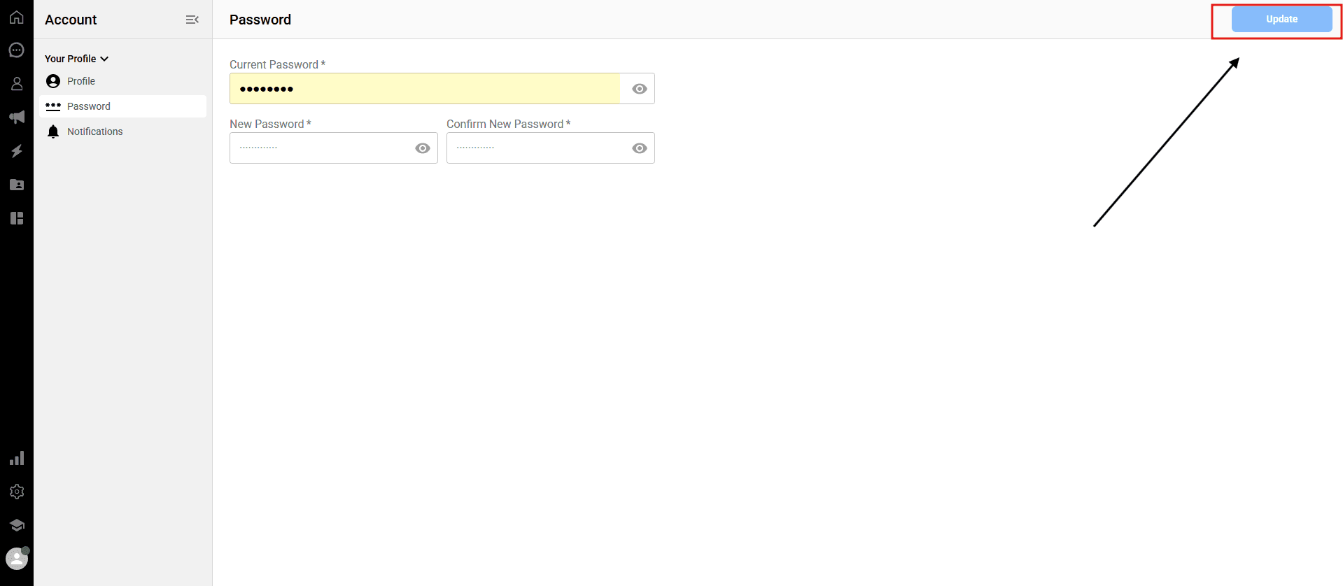 Updating your password from the dashboard