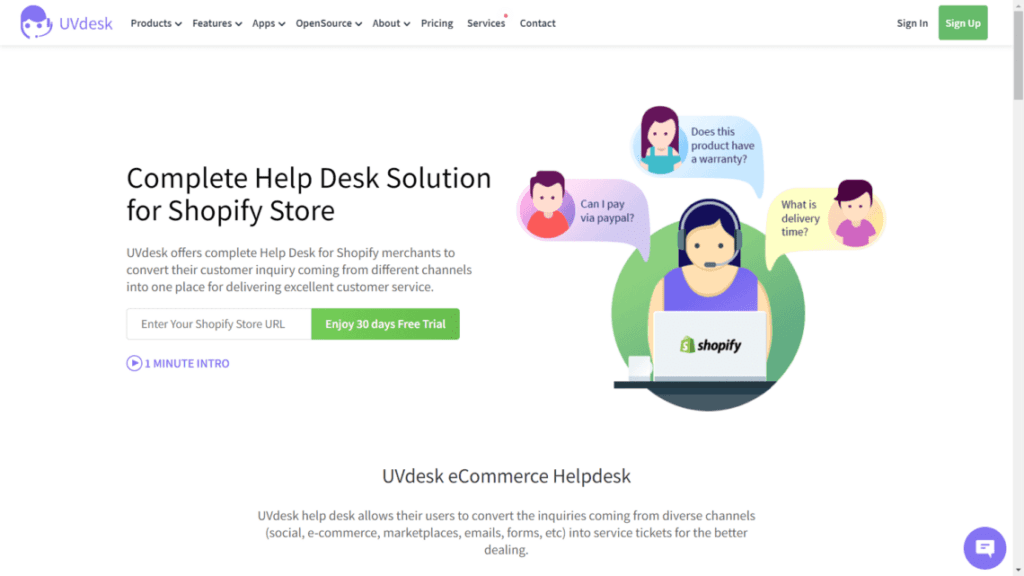 UVDesk, e-ticaret sitesi sahiplerinin müşteri etkileşimini yönetmelerine yardımcı olan bir diğer Shopify müşteri hizmeti uygulamasıdır.