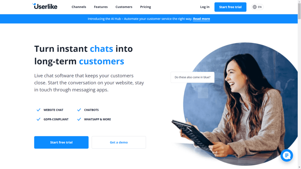 Userlike, kişiselleştirilmiş müşteri deneyimleri ile göze çarpan bir LiveChat alternatifi olarak ele alınabilir.