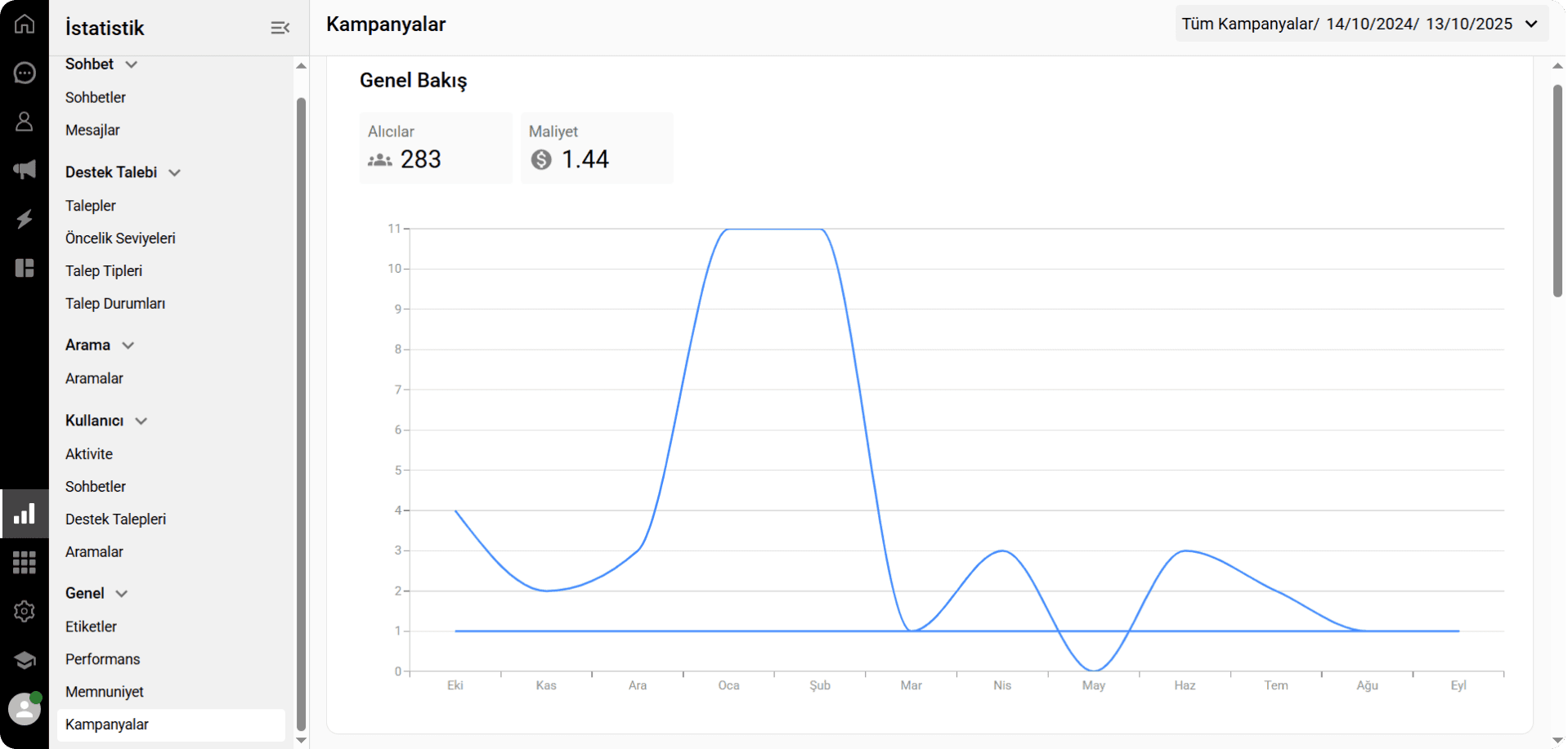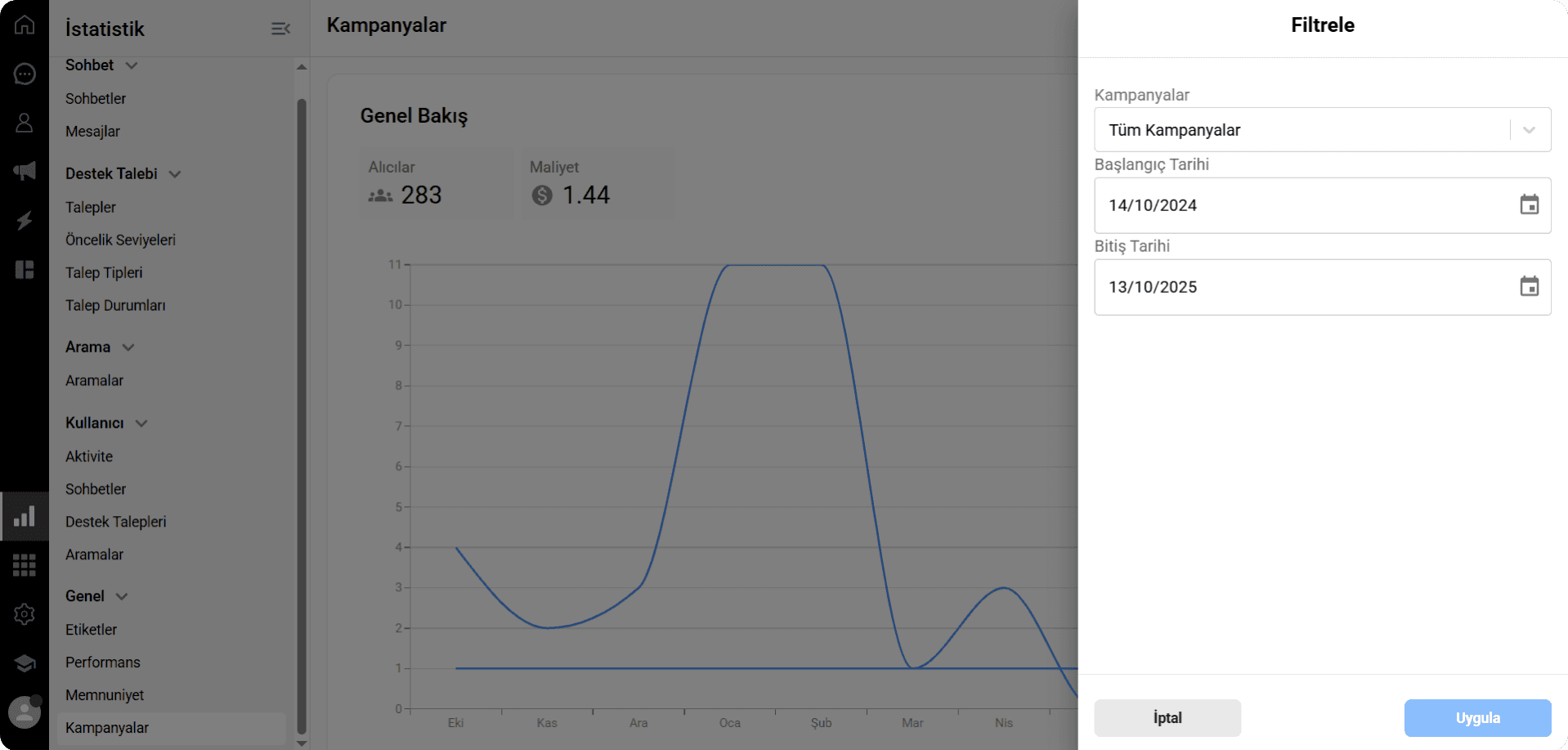 Kampanyalarınızın alıcı sayısı, maliyeti ve mesaj performansını detaylı olarak filtreleyerek görüntüleyin.