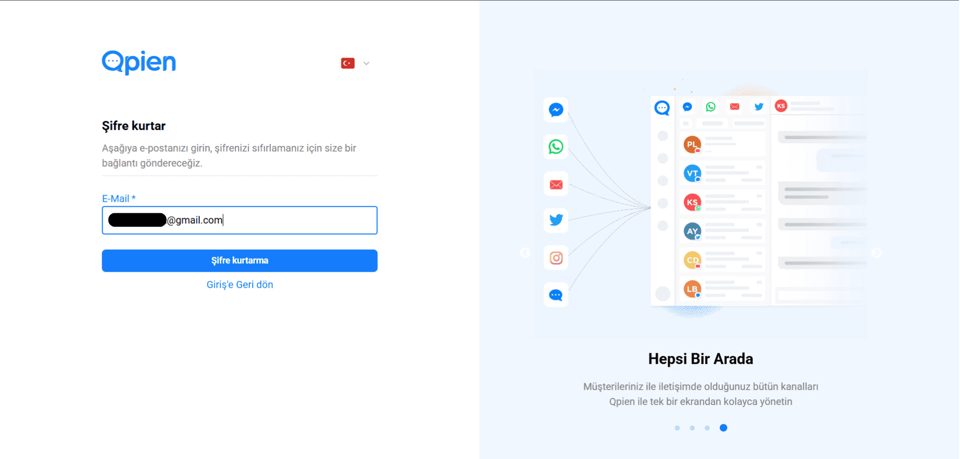 “Şifre Kurtarma” butonuna tıkladığınızda, şifre sıfırlama bağlantısı mail adresinize gönderilecektir.