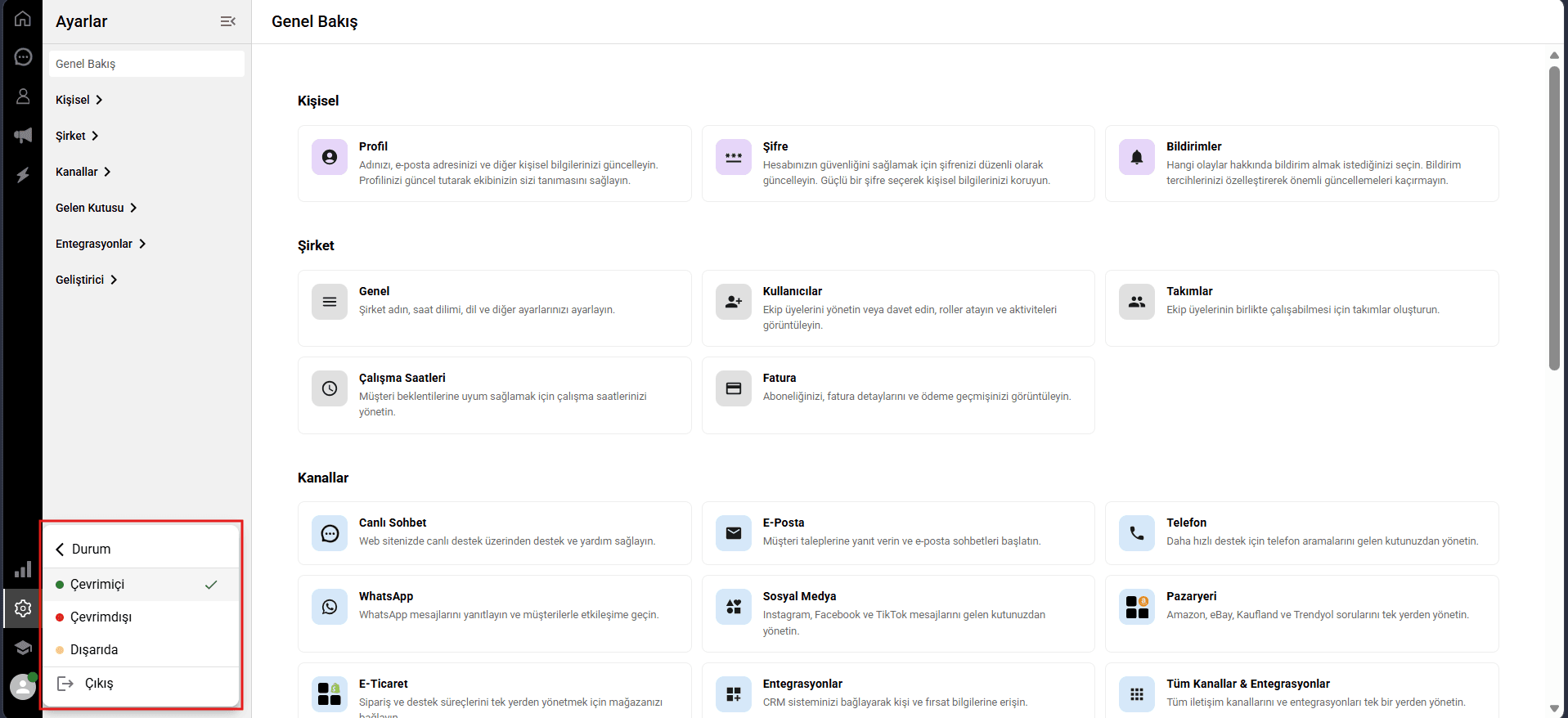 Buradaki açılır menüden uygun seçeneği (Çevrimiçi, Çevrimdışı veya Dışarıda) seçerek durumunuzu değiştirebilirsiniz.