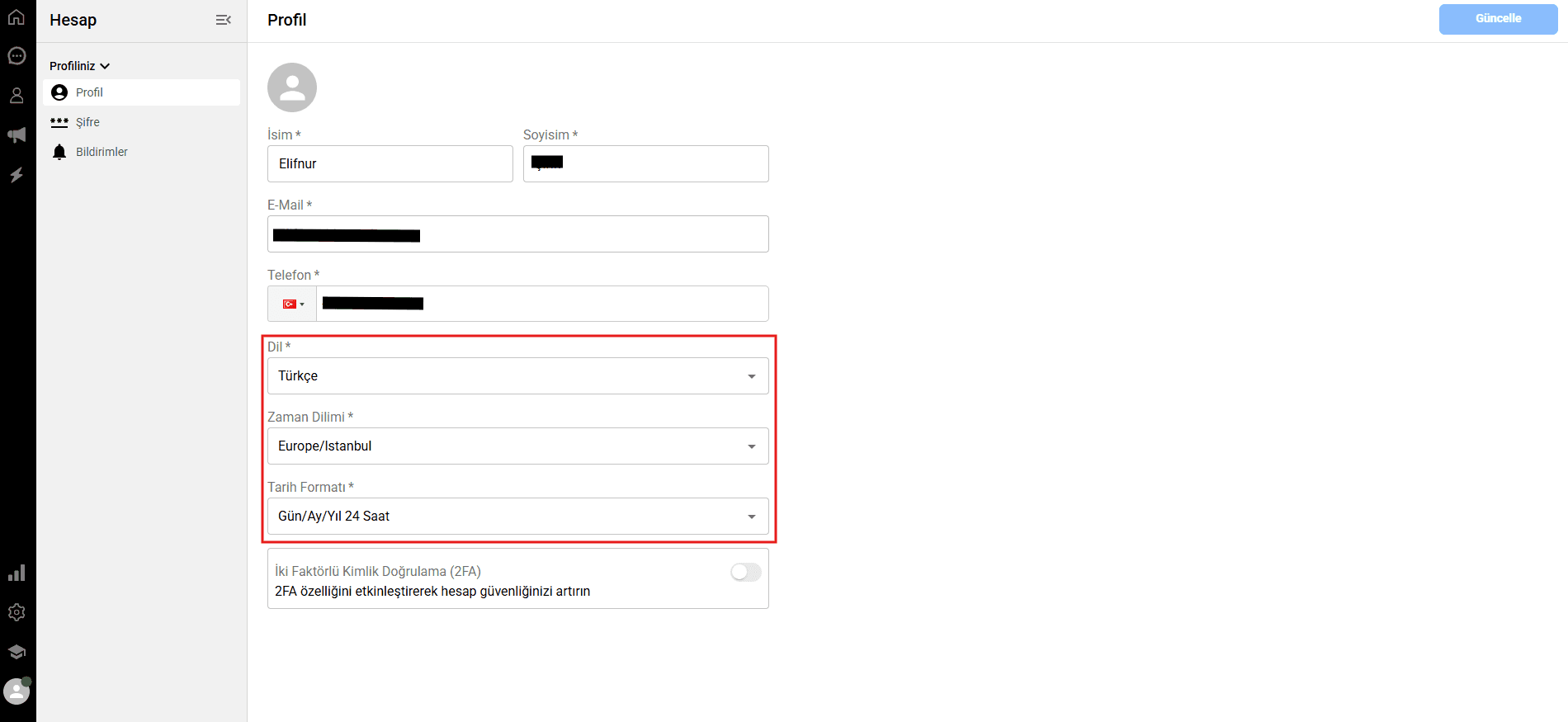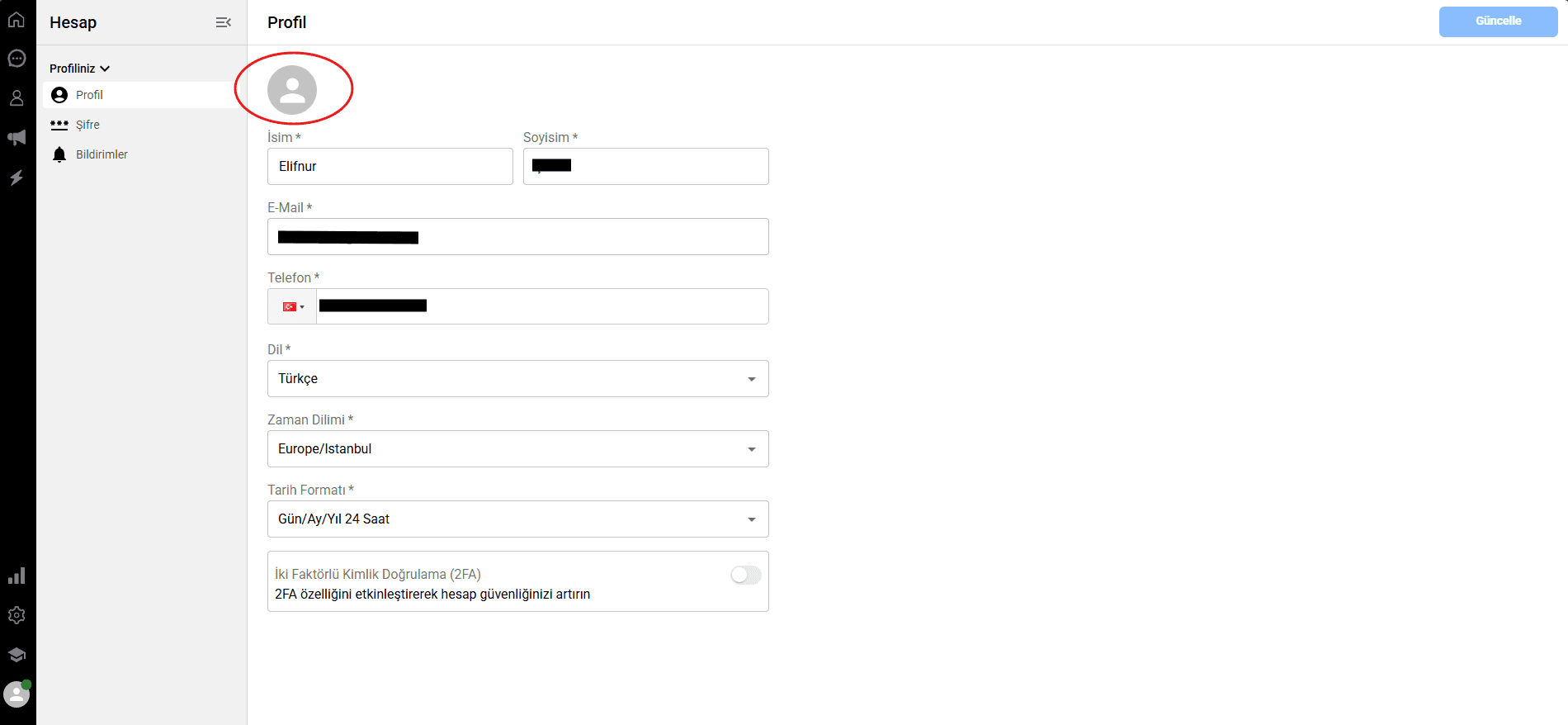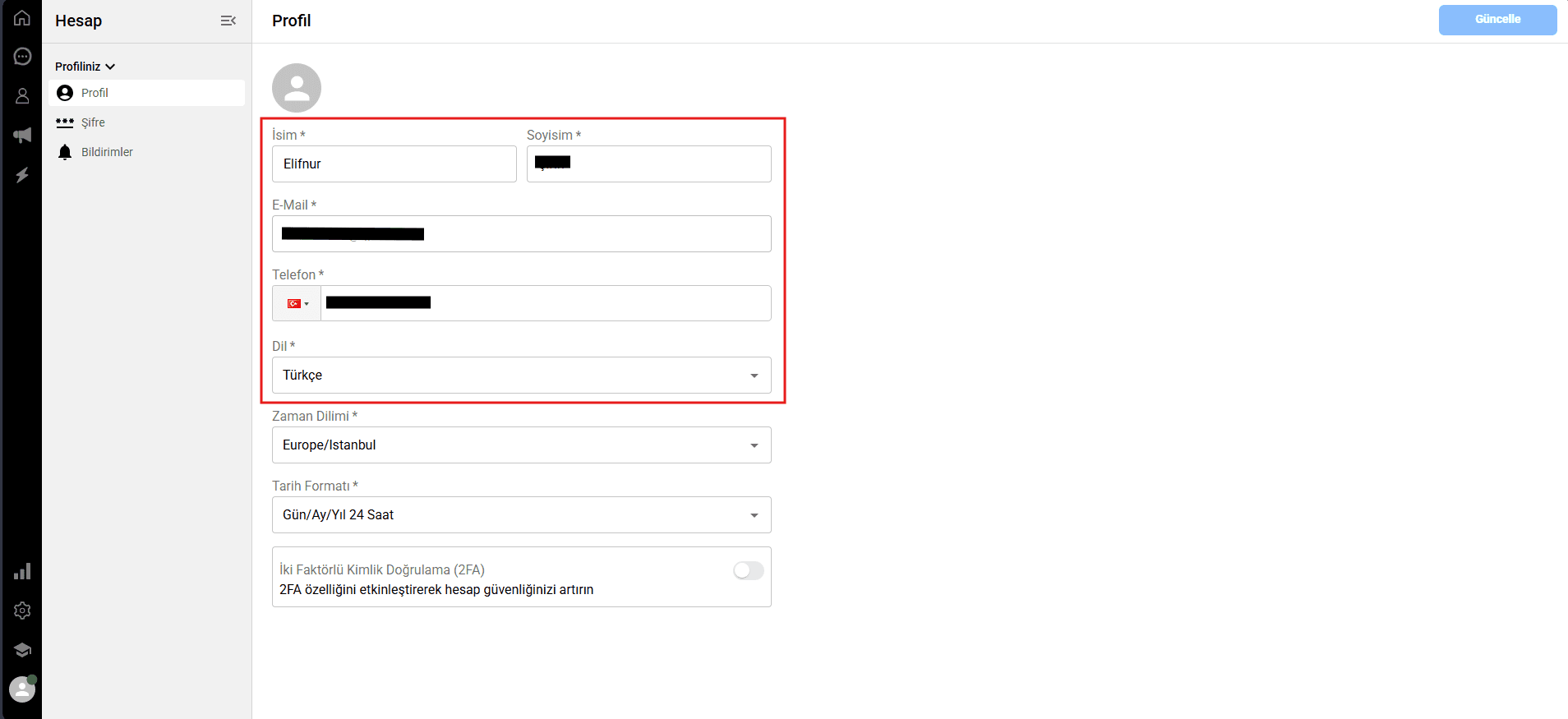 Kişisel detaylar: İsim, soyisim, e-posta adresi ve telefon numarası gibi bilgileri güncellemek için ilgili alana tıklayın ve istediğiniz bilgiyi girerek değişiklikleri yapın.