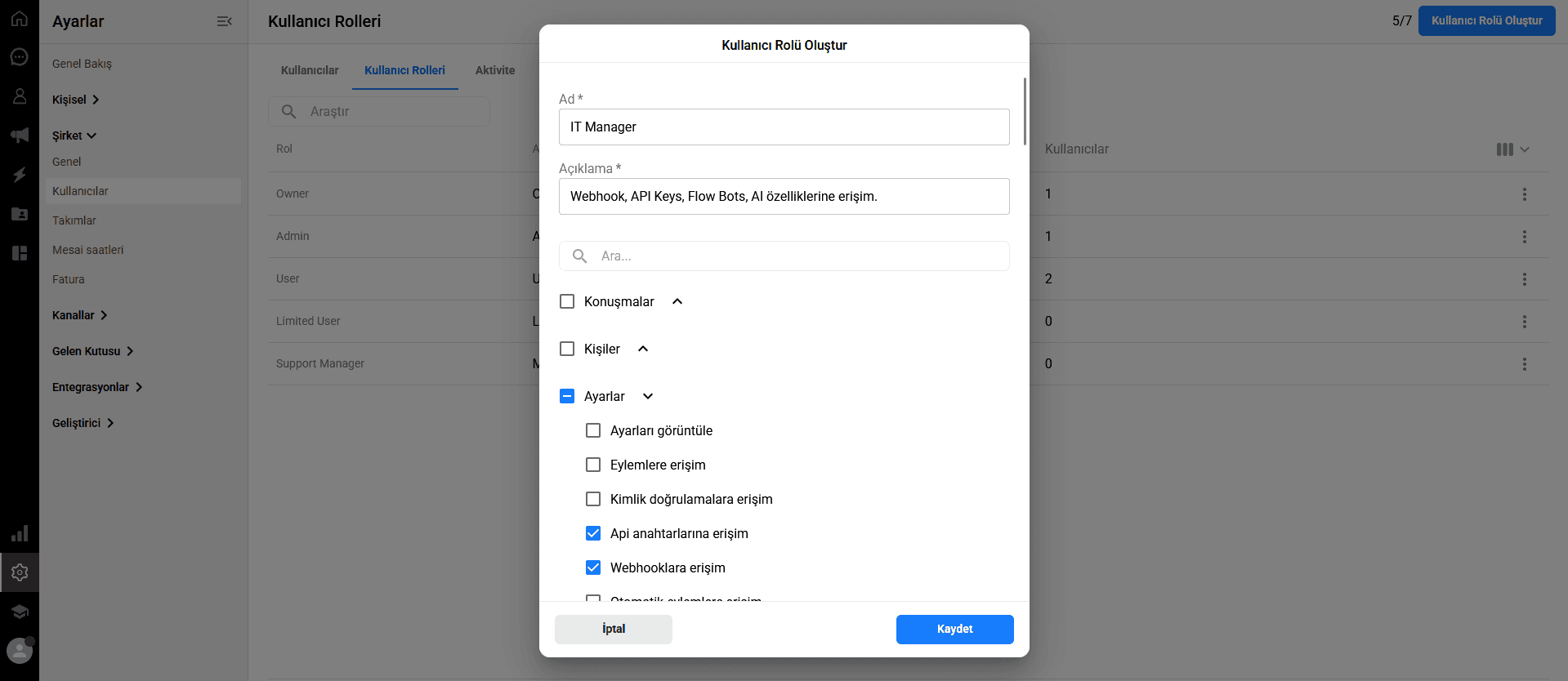 💡 İpucu: Rollerinizi yapılandırdıktan sonra, ekibinizi sistemde nasıl yöneteceğinizi ve arşivleyeceğinizi öğrenmek için Kullanıcı Yönetimi makalemizi inceleyebilirsiniz. (Not: Buraya 2. makalemiz yayınlandığında doğrudan link eklenecek.)